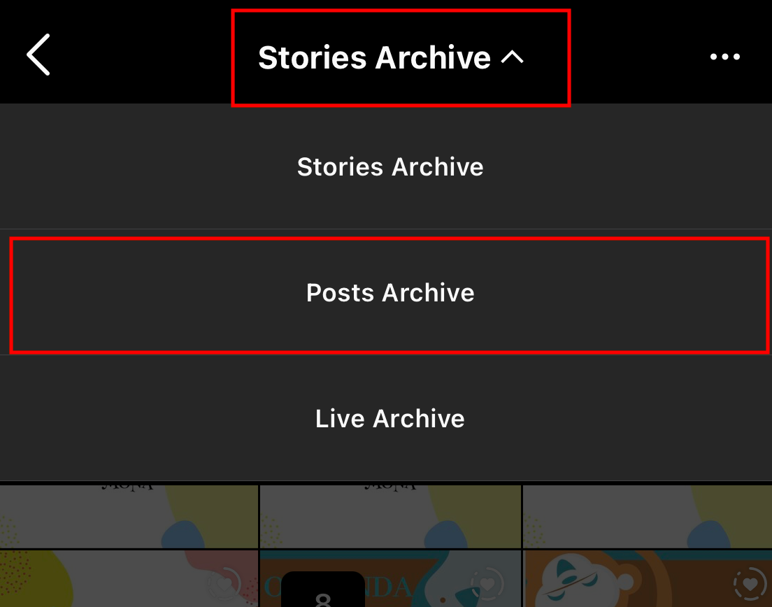 Step #4: Select the “Archive” option to access your archived Instagram posts.