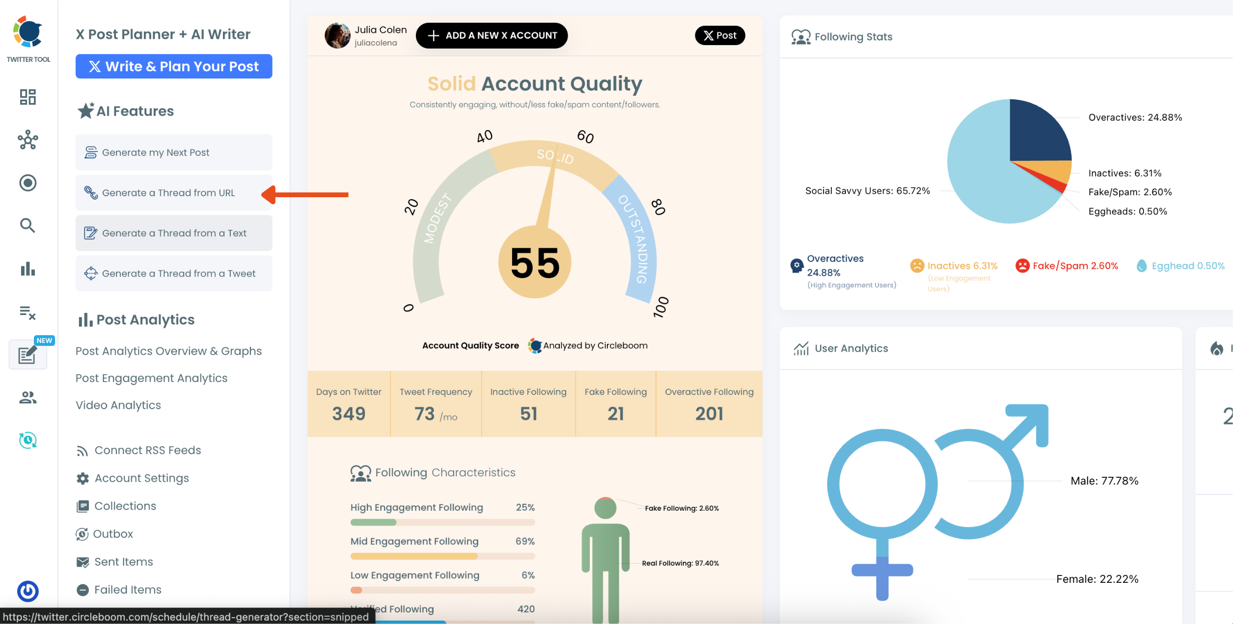 That's when I used Circleboom Twitter, an official enterprise X, which offered a game-changing feature: "Generate a Twitter Thread from an Article or News URL."