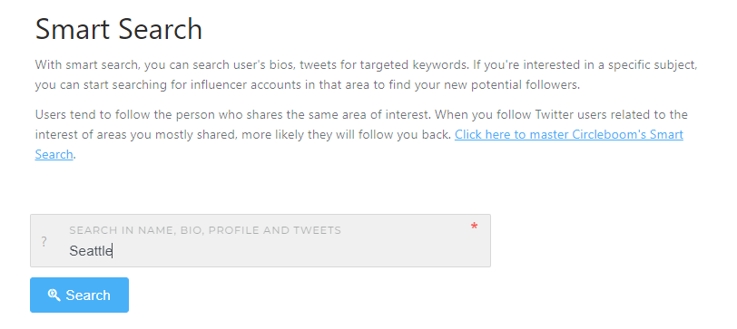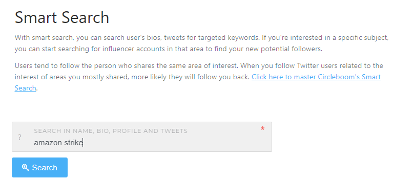 Circleboom's Smart Search uses complex algorithms to detect terms in users' profiles and the most recent Tweet data to deliver the most accurate results.