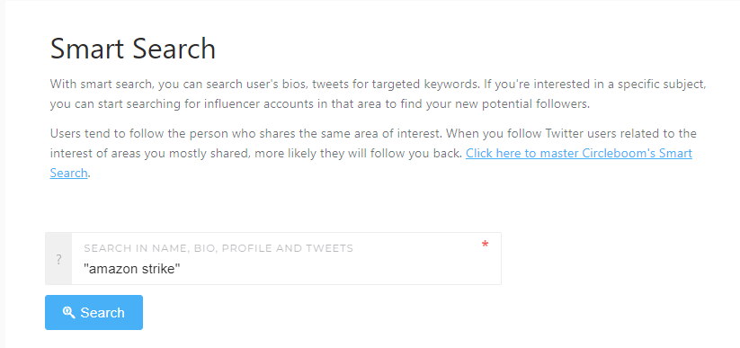 So, Smart Search is one of the sophisticated yet fundamental tools in Circleboom, with its all well-thought features included. Let's start with Smart Search: