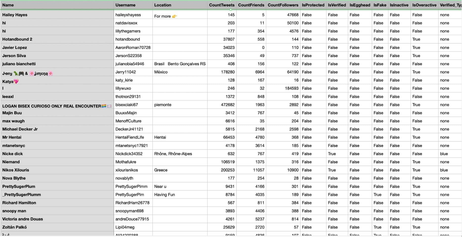 Instead of scanning a simple list, you can clearly see who has a strong follower base, which accounts are inactive or barely tweet, and which ones look suspicious or fake. You can also identify verified users, spot accounts that are highly active or overactive, and understand where your audience is located.