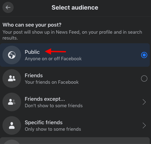 Step #4: Select "public" to make your post visible and sharable to the public audience.