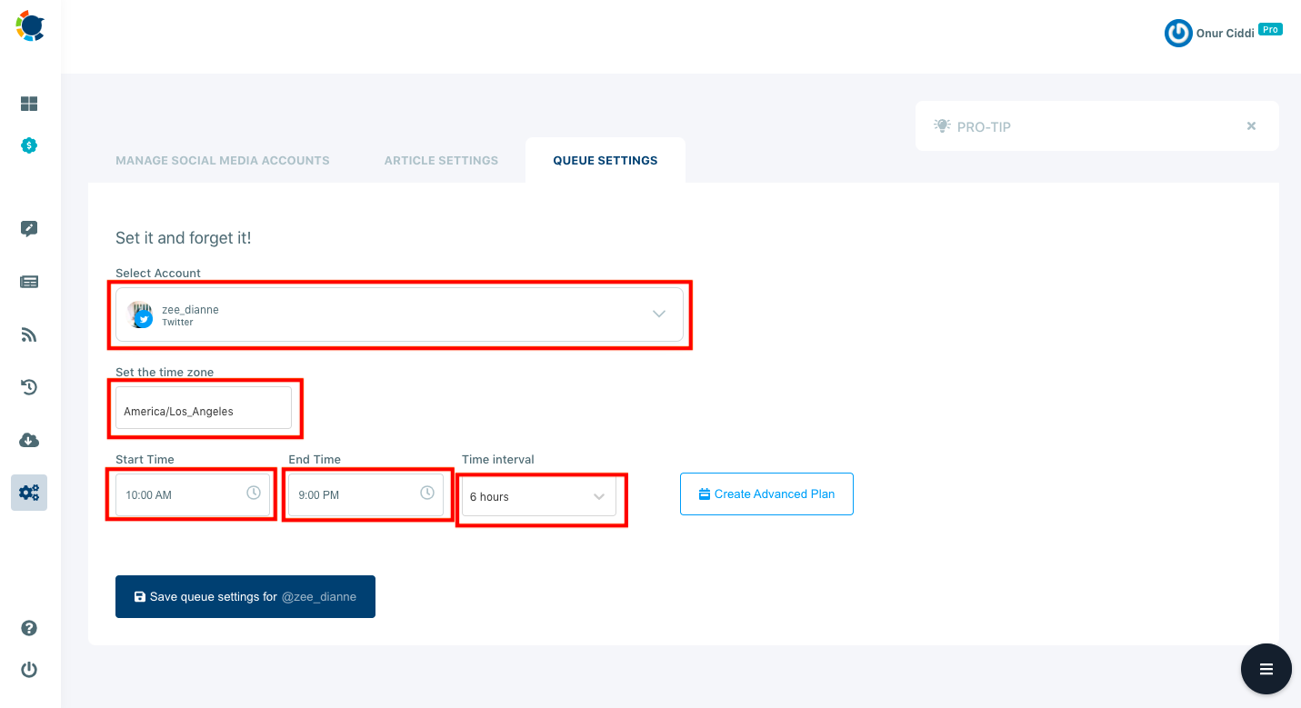 Once you are complete, click “Save Queue Settings for.” Now, you can add your tweets to your queue.