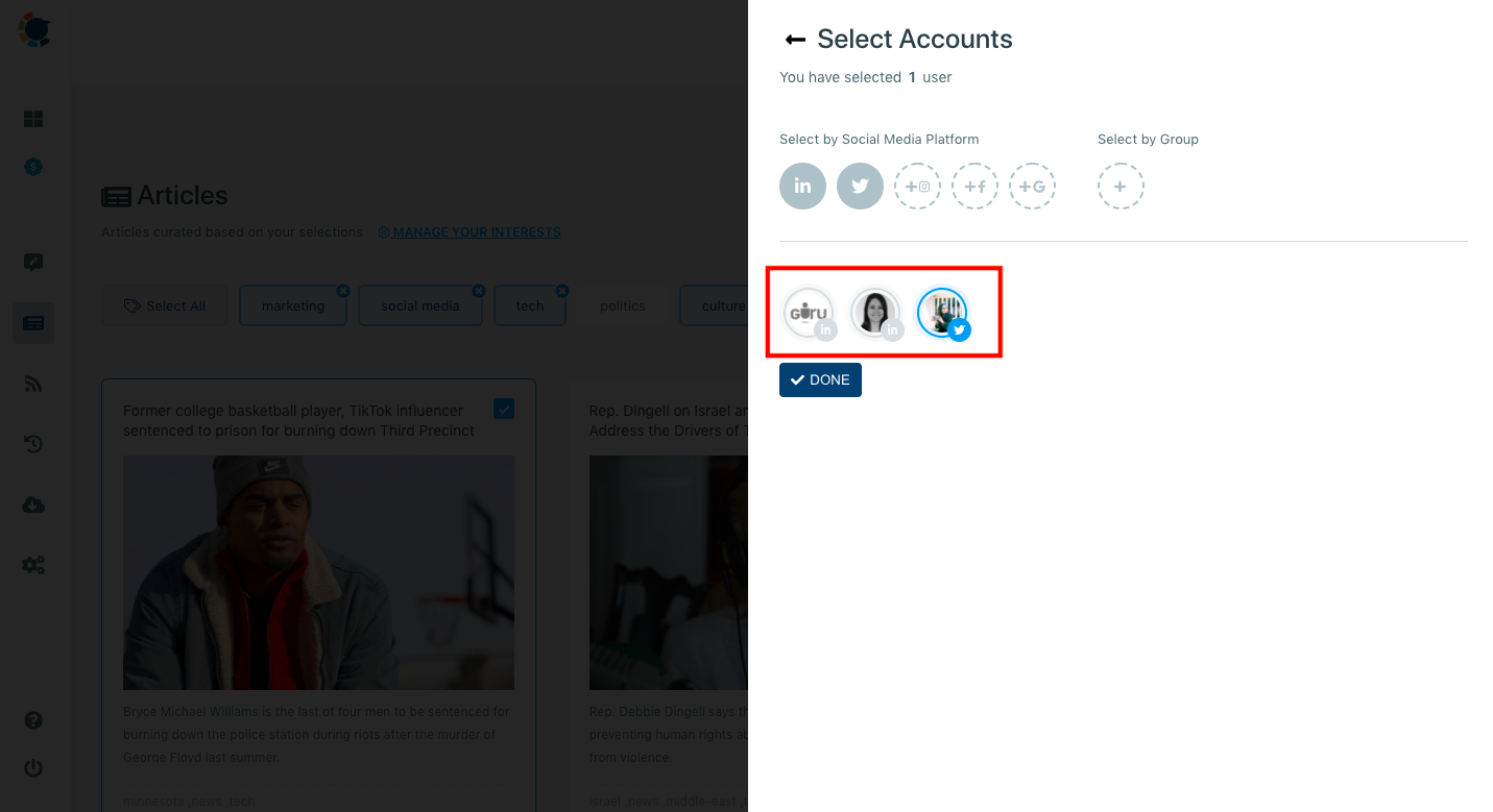 Here, you can browse through the trending articles in your interest areas and choose your favorites to post on your Twitter account.