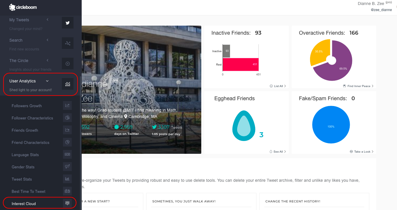 Step #1: After logging in to your account on Circleboom Twitter, You can navigate to the "User Analytics" section on the sidebar.