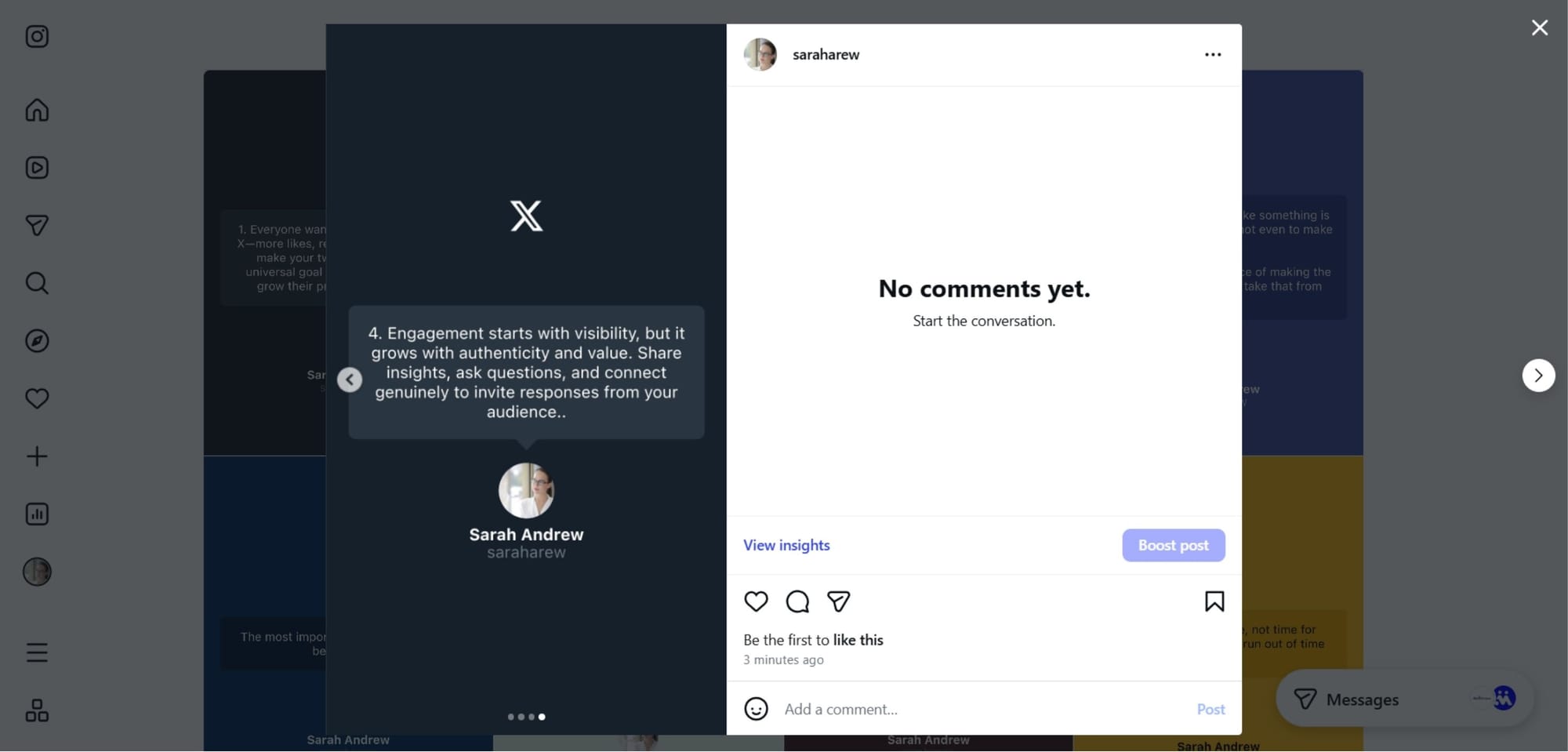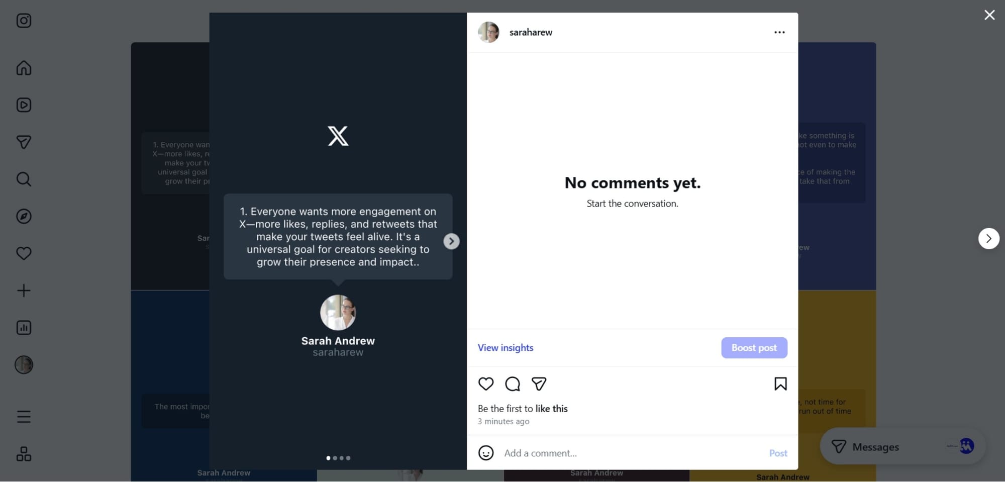 - share long-form X content on Instagram