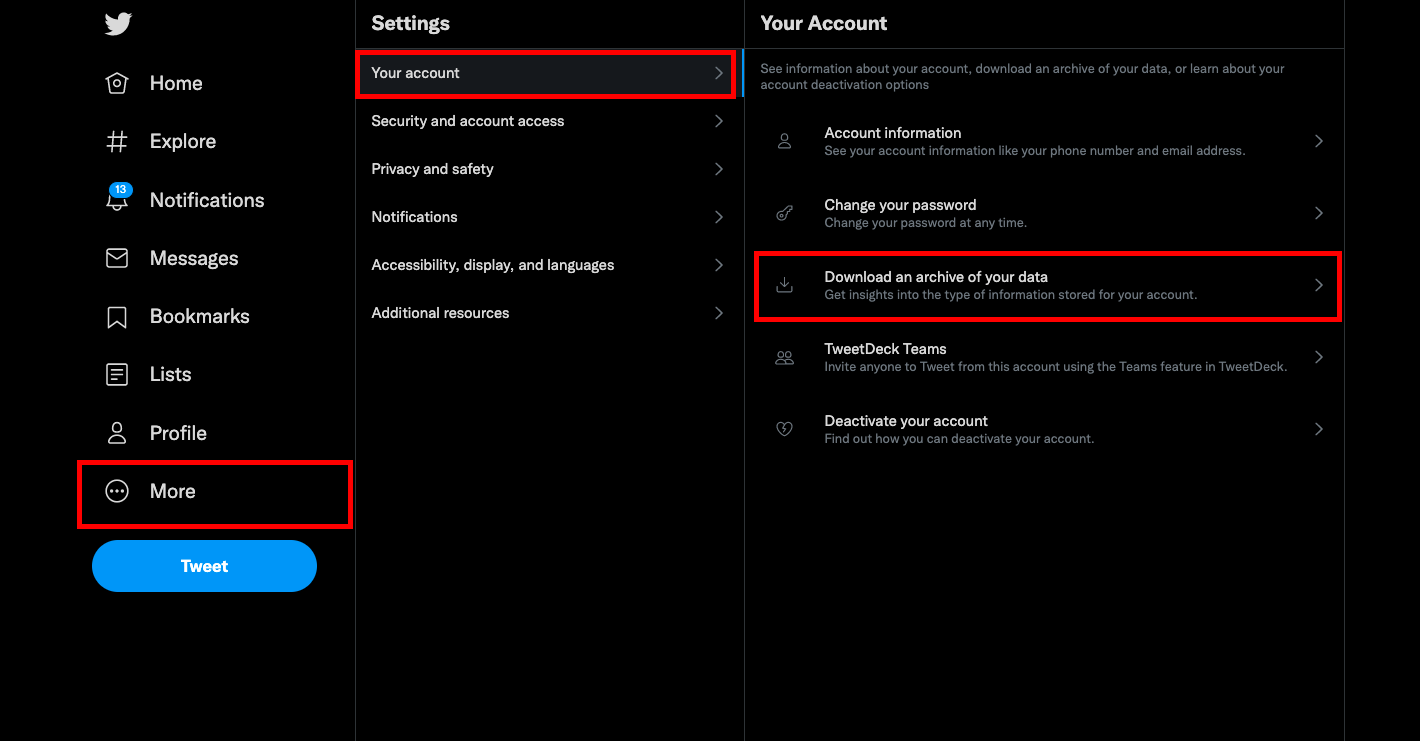 Don't be concerned if you have no idea how to do it. You can check our guide to download your Twitter archive.