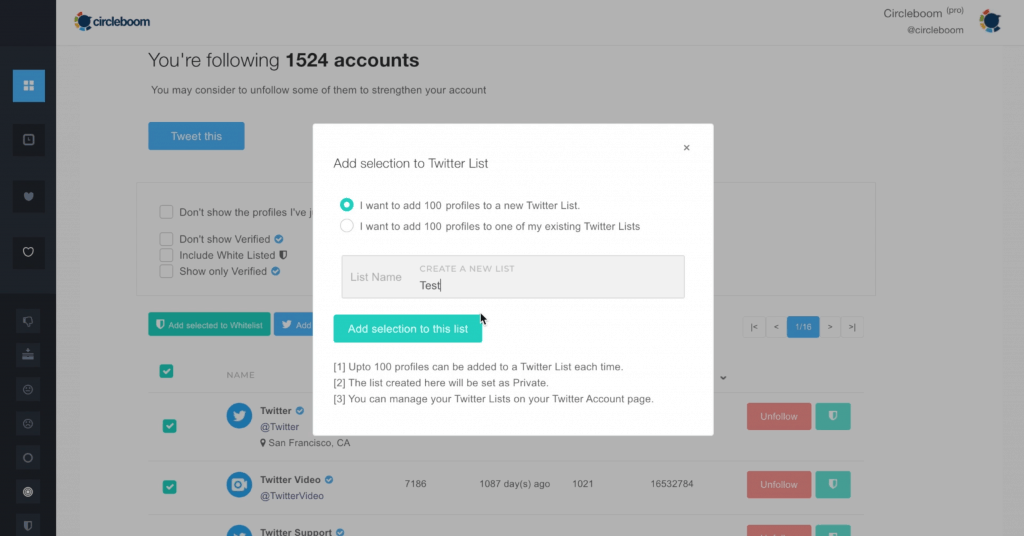 Circleboom helps you in creating Twitter lists in accordance with the Twitter rules. You can create your Twitter lists within seconds with Circleboom. You can learn the entire process of creating lists here:
